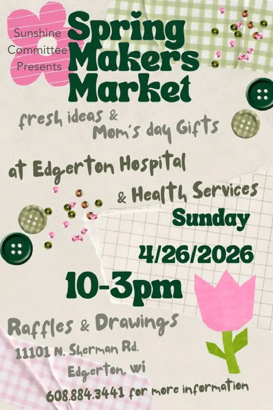 Join us for our Spring Makers Market at Edgerton Hospital! Celebrate the season with a showcase of creativity featuring handcrafted goods from talented local makers. This special event will highlight a variety of unique, handmade items perfect